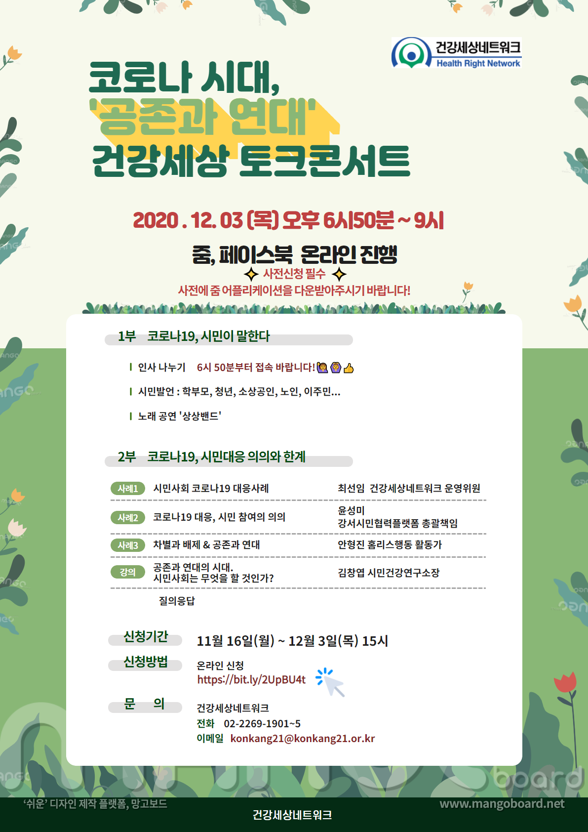 코로나시대 공존과 연대 건강세상 토크콘서트를 준비했다고 합니다.